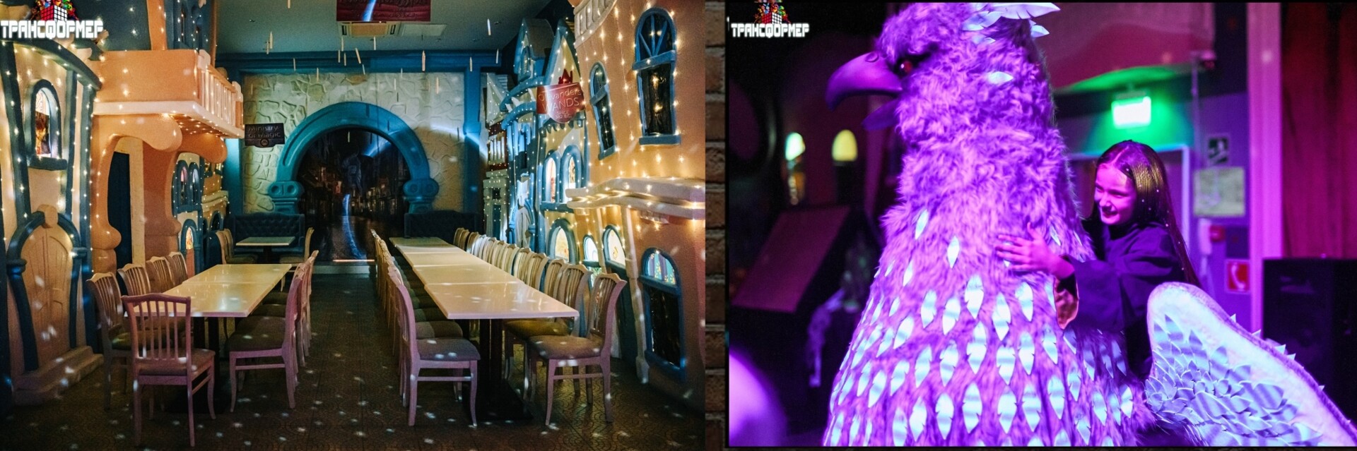 Здесь есть все шоу, есть игровые элементы - конкурсы, есть животные (за доплату: кролик и цирковая собака, можно добавить енота или сову, по желанию), и, конечно, входит сам квест в квест-лабиринте.
